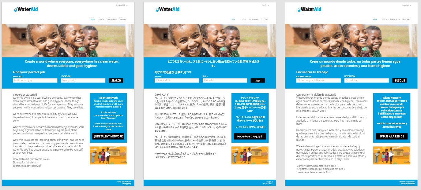 Ensuring the design is suitable for all WaterAId's languages means that the global jobs site can become even more accessible in the future.